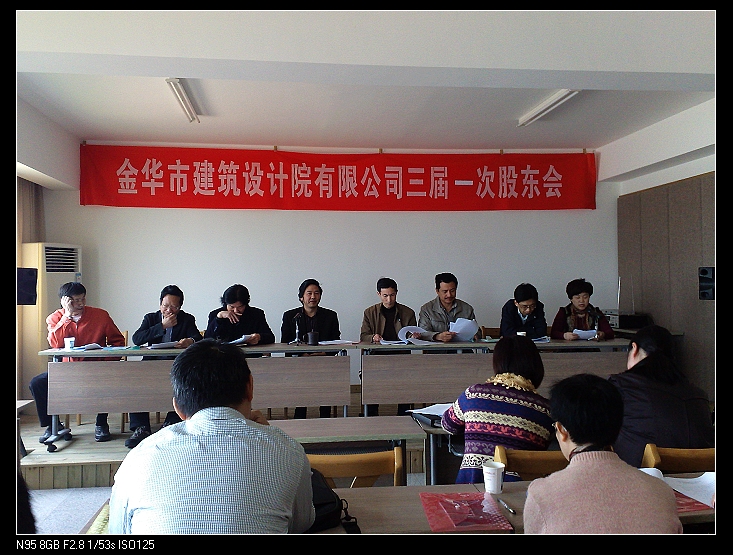 金華市建筑設(shè)計(jì)院有限公司三屆一次股東會(huì)于二0一0年四月二十四日在金華市建筑設(shè)計(jì)院有限公司十一樓會(huì)議室召開,會(huì)期半天,會(huì)議由公司董事長(zhǎng)吳學(xué)敏主持。