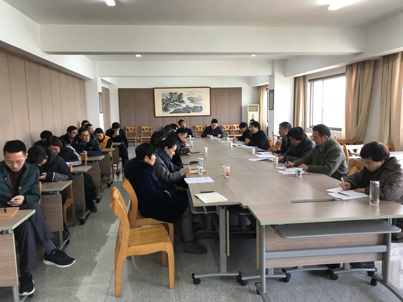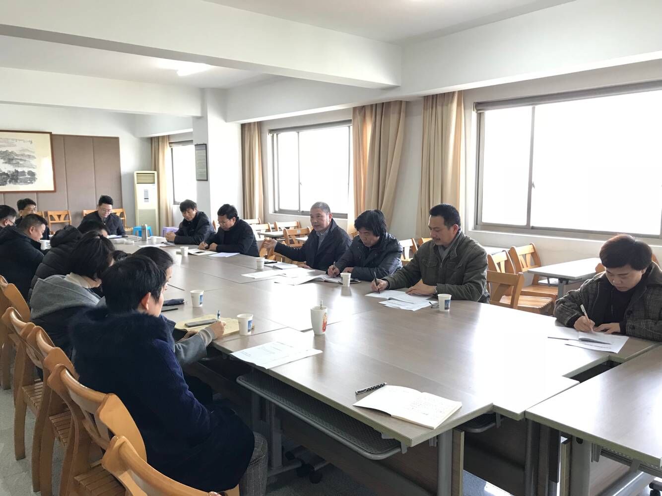 2018年12月24日下午,公司在11樓會議室召開了中層及以上管理人員會議。會議由公司副總經(jīng)理樓希龍主持。公司領(lǐng)導(dǎo)及二十余位中層管理人員參加會議。會議傳達(dá)了關(guān)于聘任王欣為金華市龍源建設(shè)工程施工圖審查中心主任及關(guān)于聘任葉肖為金華市建筑設(shè)計院有限公司辦公室副主任(主持工作)的決定。吳學(xué)敏總經(jīng)理就為什么調(diào)整龍源中心班子及設(shè)計公司辦公室班子、班子調(diào)整怎樣產(chǎn)生的等事項作了說明;并對兩位新調(diào)整人員提了要求;二位新提拔同志作了表態(tài)發(fā)言。會議還通報了近期重要工作。.jpg)